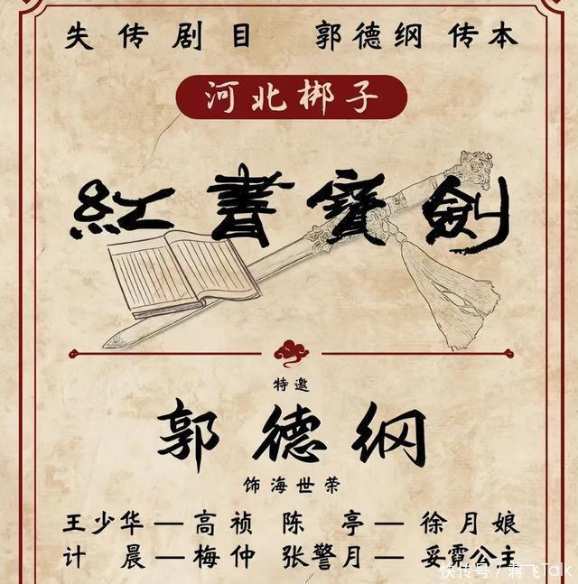 三、真假“失传” 2025年2月份,德云社在宣传相声演员郭德纲参演的河北梆子《红书宝剑》时特意标明了“失传剧目”,引起了争议。 严格说来,德云社当然可以这么宣传,但之所以引发争议是因为“失传”两个字存在较大水分。